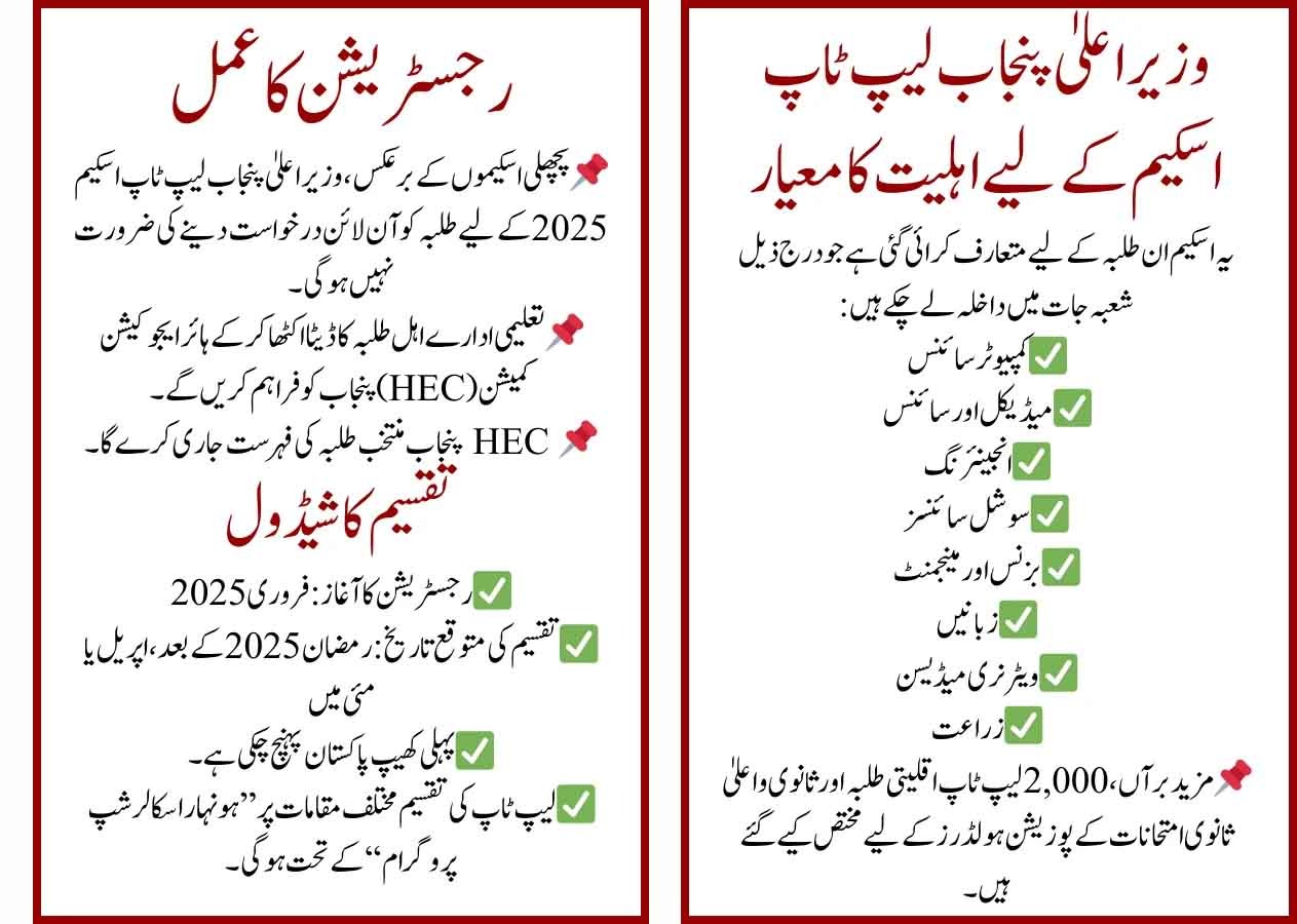 The CM Punjab Laptop Scheme, launched by Maryam Nawaz, aims to empower students with cutting-edge technology and scholarships. This initiative is part of the Chief Minister’s Laptop and Merit Scholarship Program 2024-2025, which will distribute laptops to deserving students across Punjab ¹.
